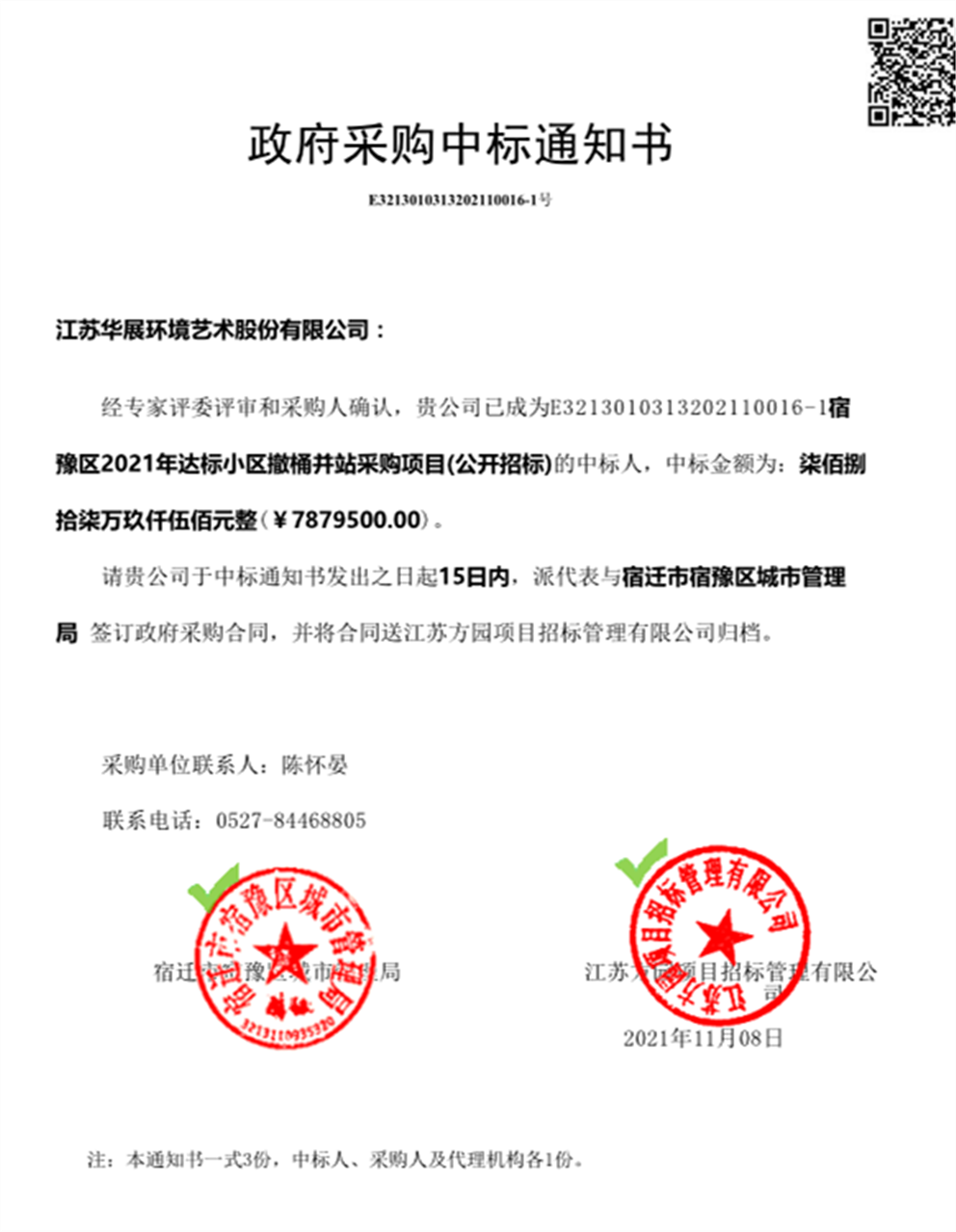 【中標通知】宿遷市宿豫區2021年達標小區撤桶并站采購項目